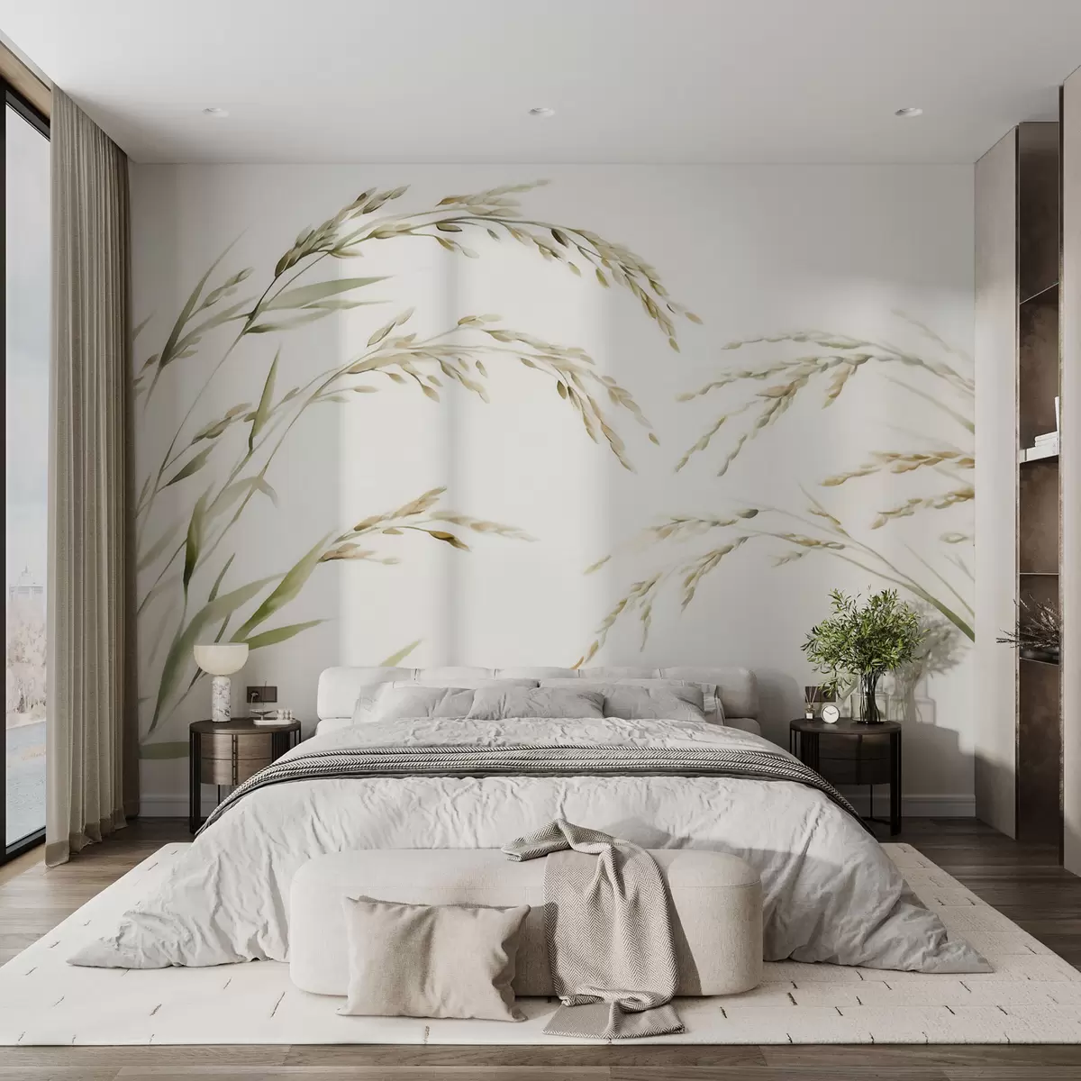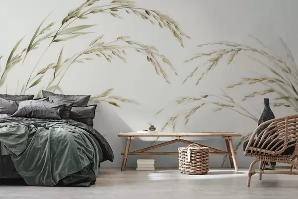 Fototapeten Zarte Getreidegräser in Pastelltönen mit einem sanften Aquarelleffekt Nr. w09712