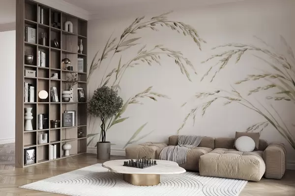 Fototapeten Zarte Getreidegräser in Pastelltönen mit einem sanften Aquarelleffekt Nr. w09712