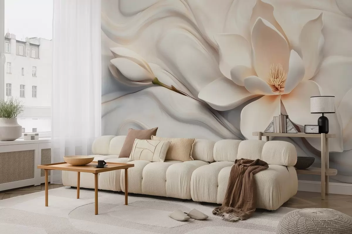 Fototapeten Dreidimensionale weiße Magnolie mit Marmorstruktur-Imitation im Relief Nr. w09729