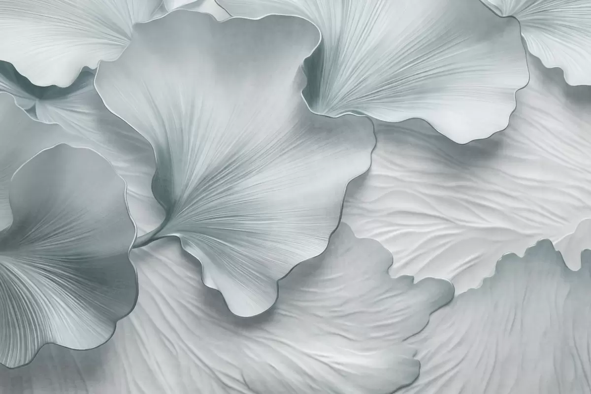 Fototapeten Strukturierte, blau-weiße Ginkgoblätter mit zartem Bio-Aufdruck Nr. w09741v1