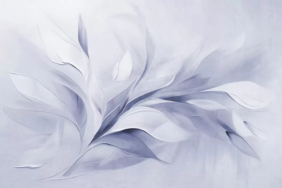 Fototapeten Abstrakter, strukturierter Malstil mit hellblauen und weißen, fließenden Blättern Nr. w09765