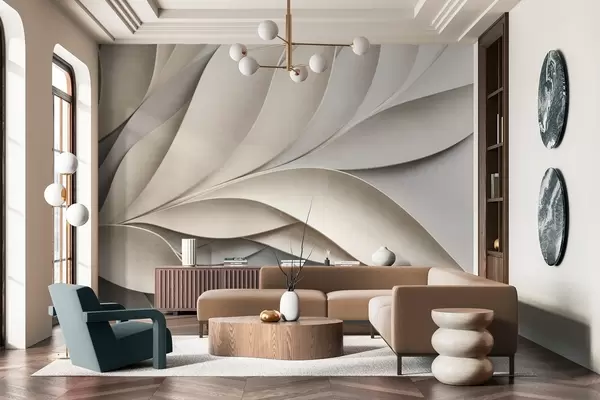 Fototapeten Abstrakte Blätter in Beige und Grau, strukturierte moderne Kunst Nr. w09769