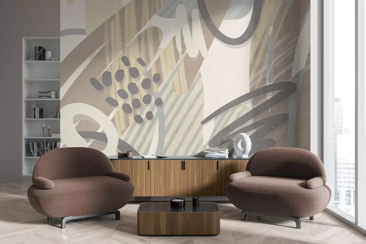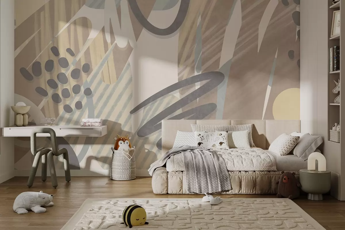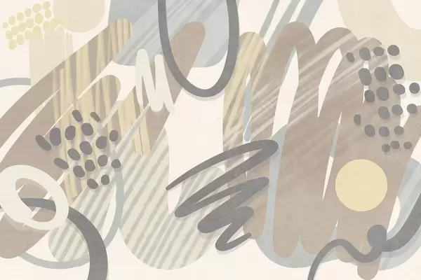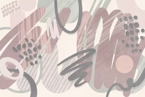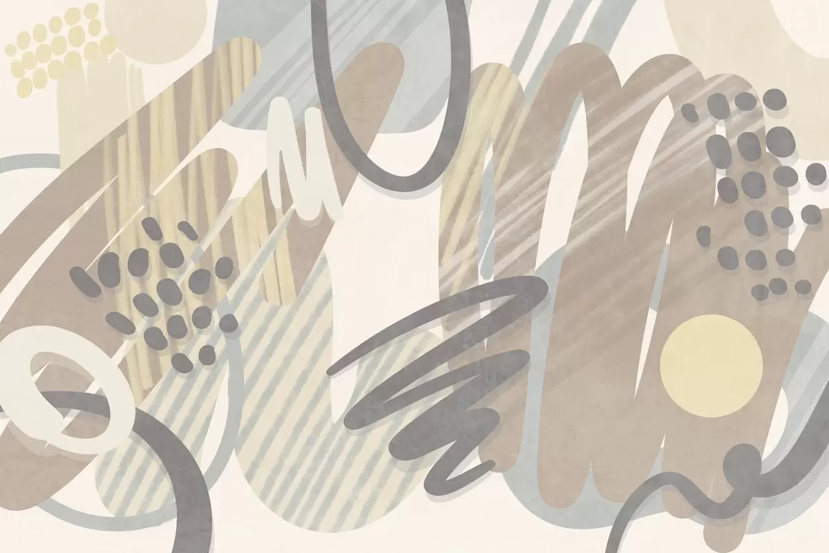 Fototapeten Abstrakter Strukturdruck mit organischen Formen, Kritzeleien und Punkten in gedeckten Pastelltönen Nr. w09774