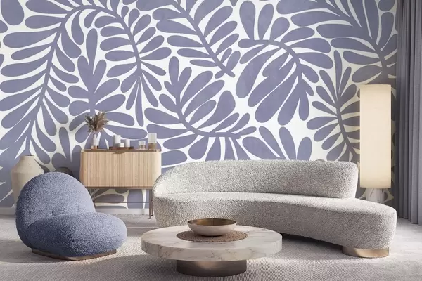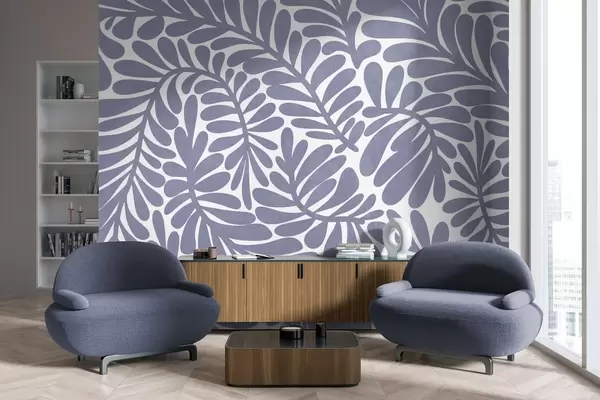 Fototapeten Stilisierte hellblaue Blätter vor einem hellen Hintergrund, strukturierte Grafik Nr. w09775v1