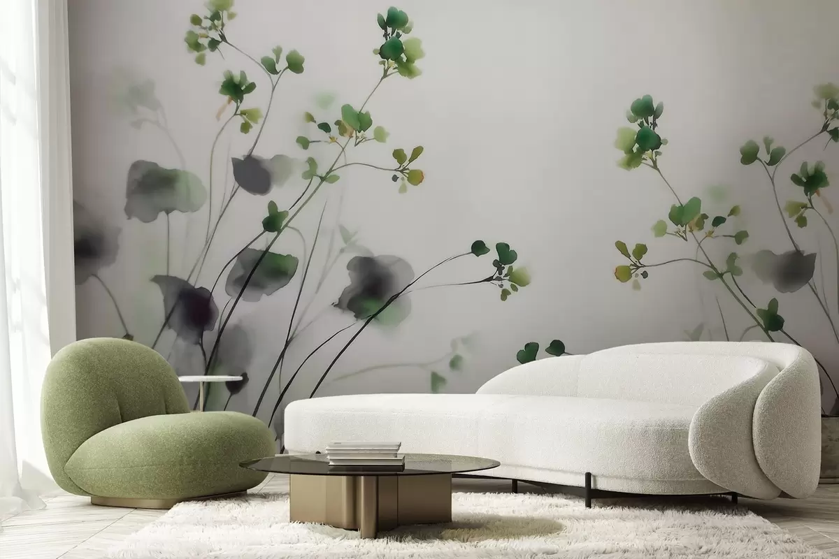 Fototapeten Zarte Wildblumen und Gräser im Aquarellstil Nr. w09796