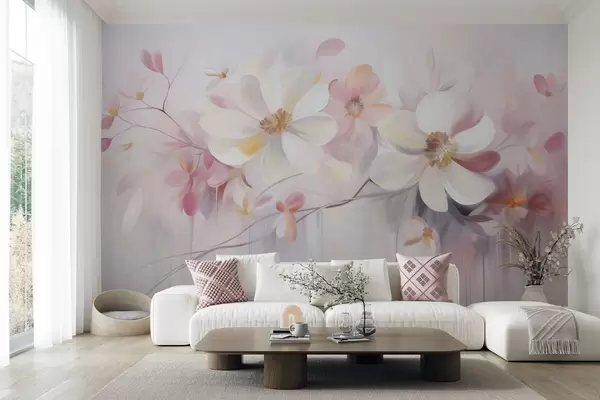 Fototapeten Weiße und rosa Blumen mit zarten Blütenblättern, strukturierte Kunst, abstrakt, sanfter Hintergrund Nr. w09811
