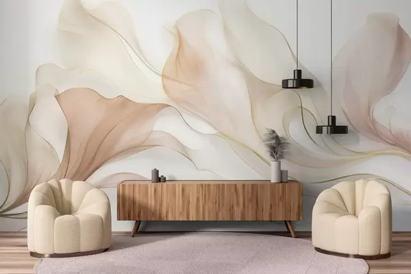 Fototapeten Abstrakte, fließende Textur in Pfirsich- und Cremetönen mit zarten Linien Nr. w09815