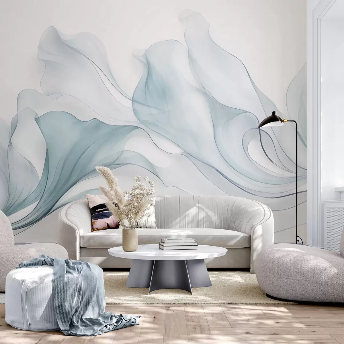 Fototapeten Abstrakte, fließende Textur in Blautönen mit zarten Linien Nr. w09815v1