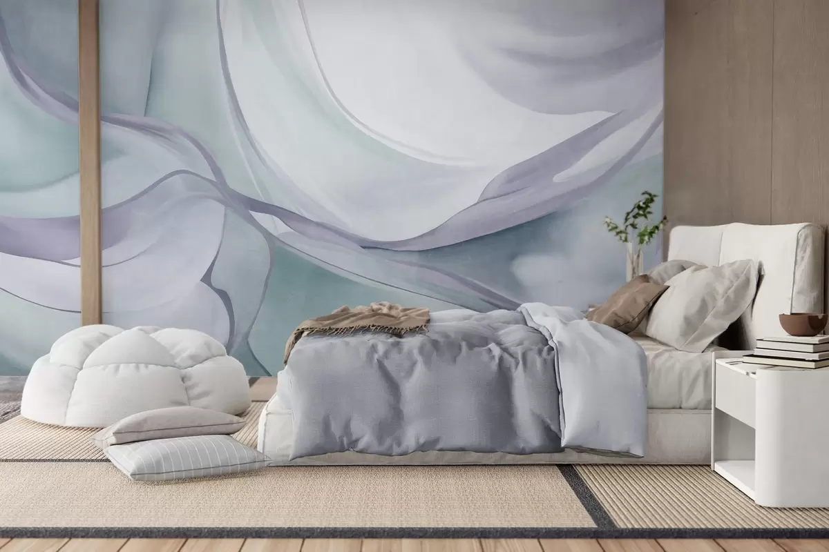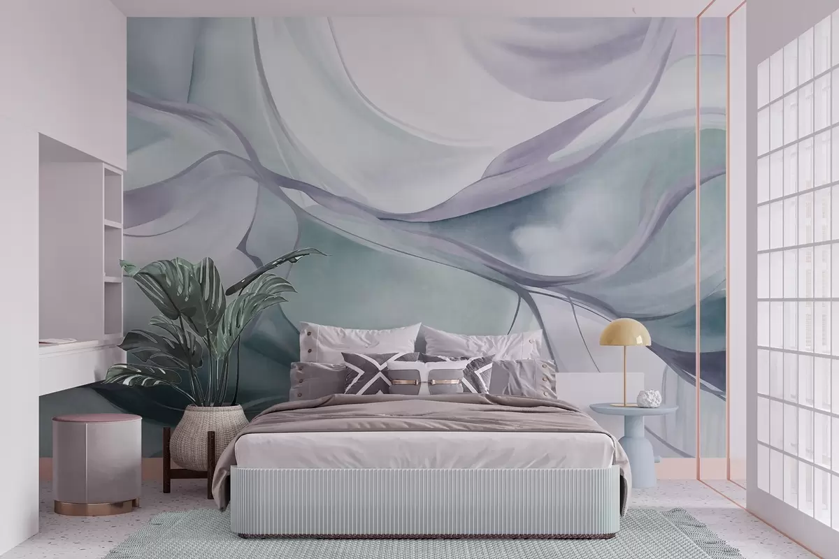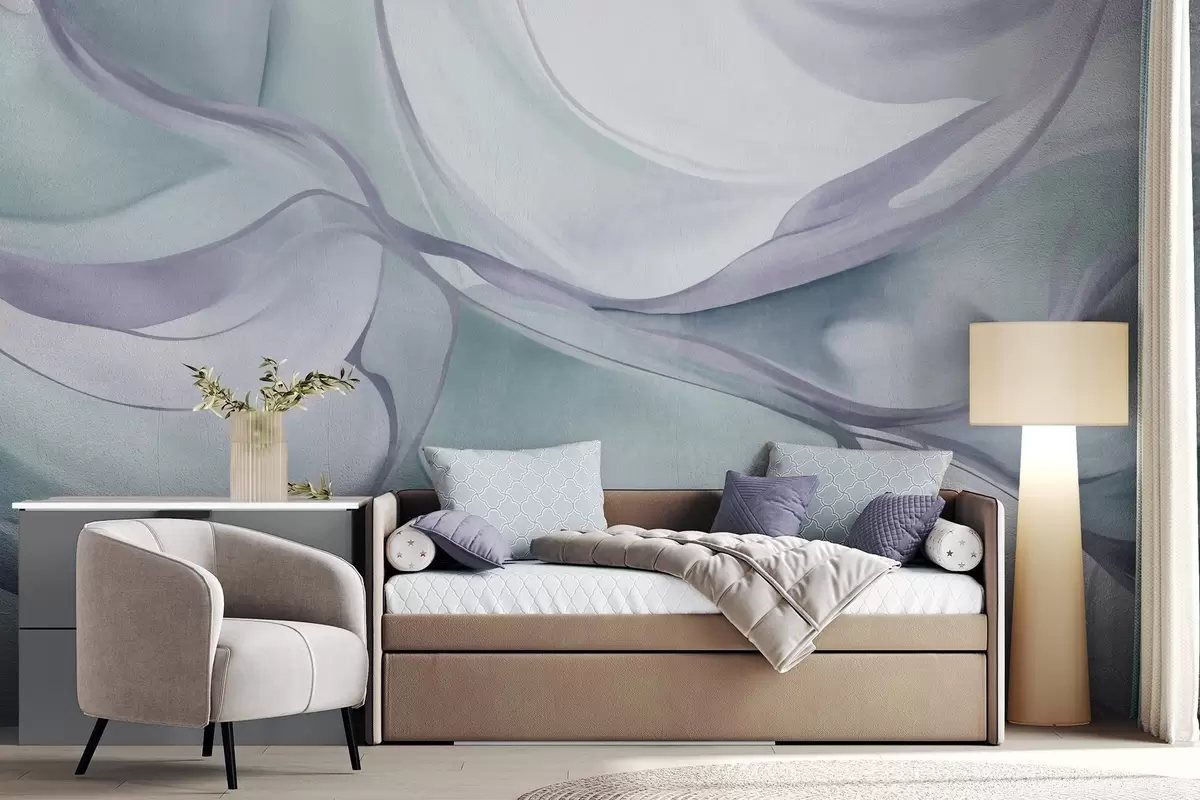 Fototapeten Abstrakte, strukturierte, fließende Formen in Blau- und Grautönen mit zarten Linien Nr. w09818v1