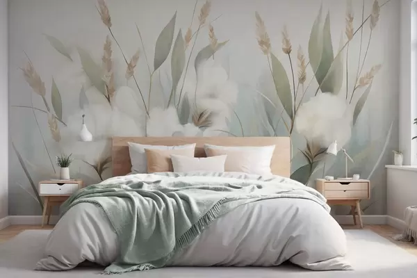 Fototapeten Weiße Trockenblumen und hohes Gras vor einem sanften, gedämpften Hintergrund, gemalt im impressionistischen Stil Nr. w09823