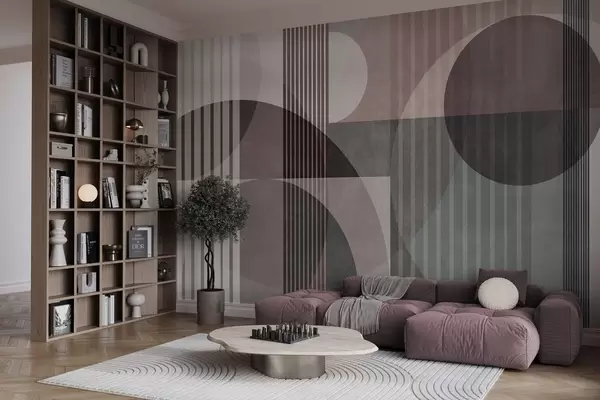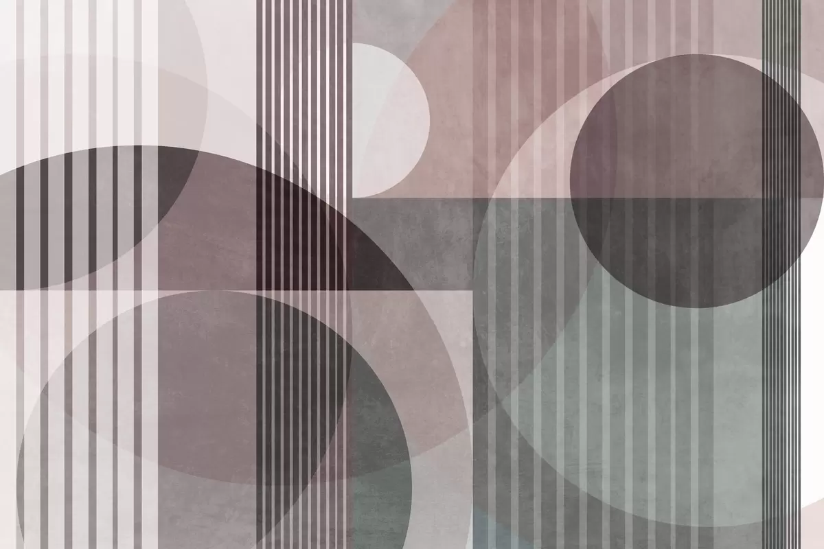 Fototapeten Abstrakte geometrische Formen aus Kreisen und Linien, gedämpfte Farbtöne, strukturierte, vielschichtige Komposition Nr. w09834v1