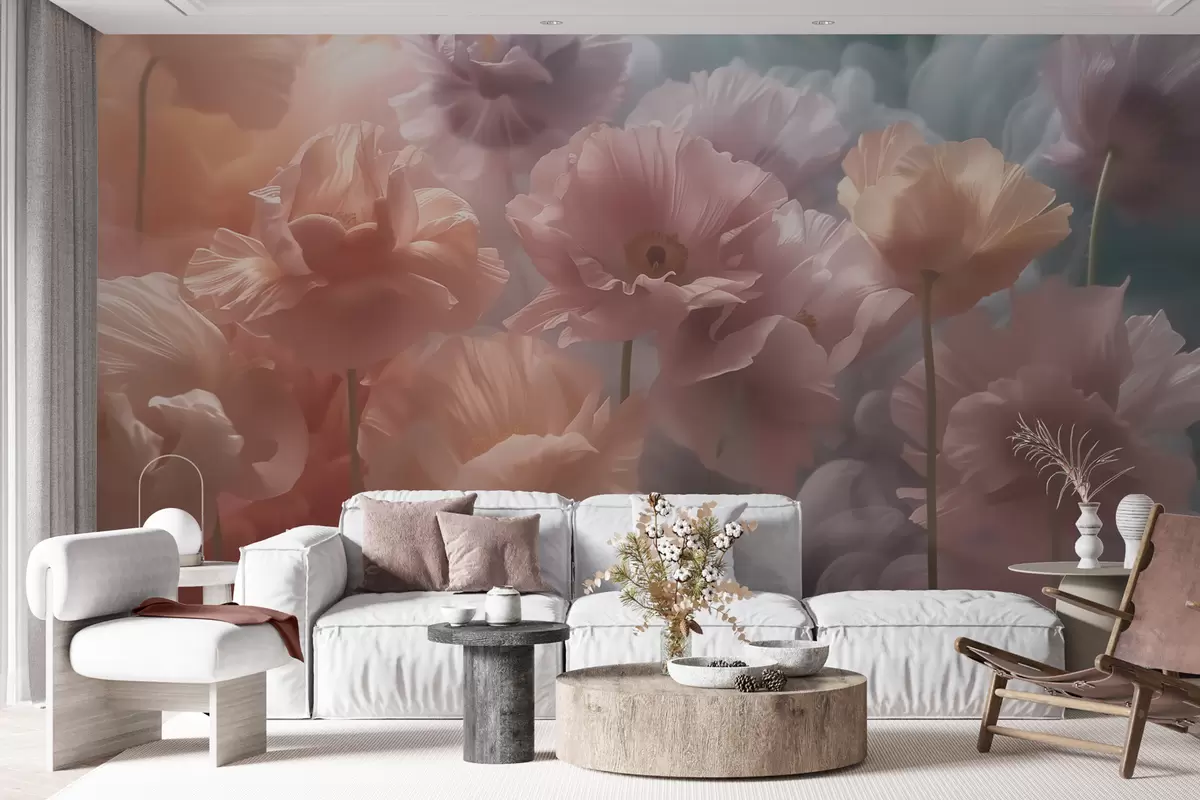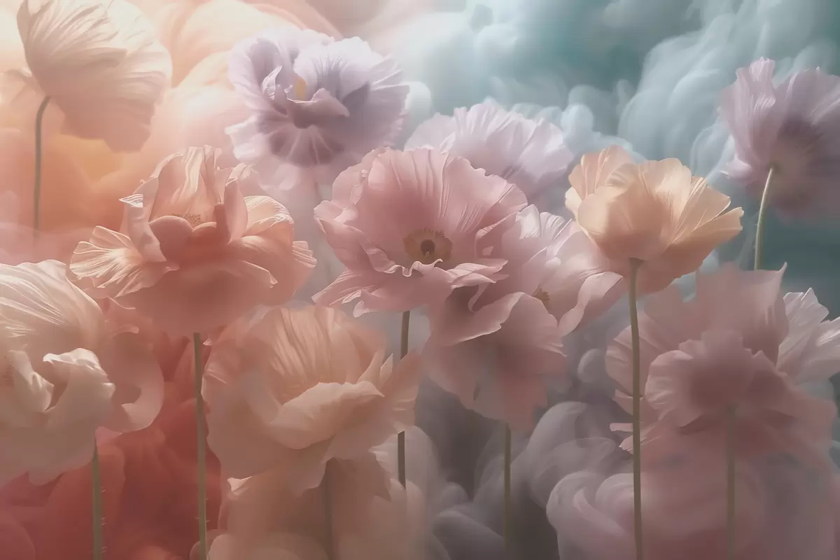 Fototapeten Luftige Blumen mit durchscheinenden Blütenblättern im sanften Morgenlicht Nr. w09847
