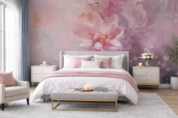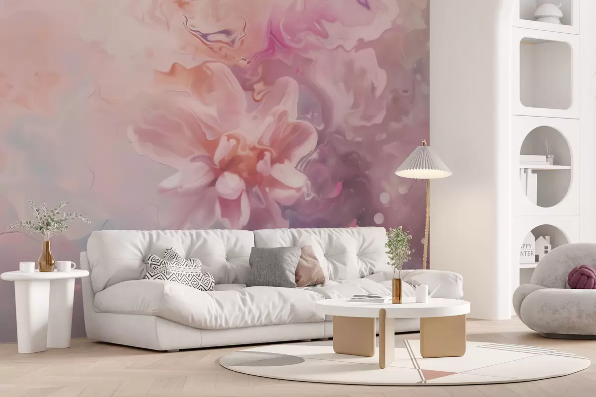 Fototapeten Eine abstrakte Komposition mit einer Blume und zartrosa Farbtönen im Aquarellstil Nr. w09859