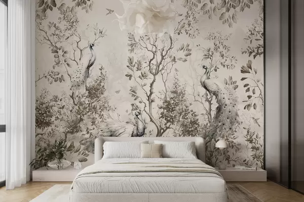 Peintures murales Un jardin avec des oiseaux fragiles, des paons Nr. u94850