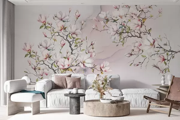 Murale Magnolias en fleurs sur fond de marbre u96114