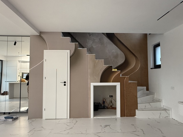 Le papier peint est divisé en bandes pratiques d'une largeur maximale de 50 cm