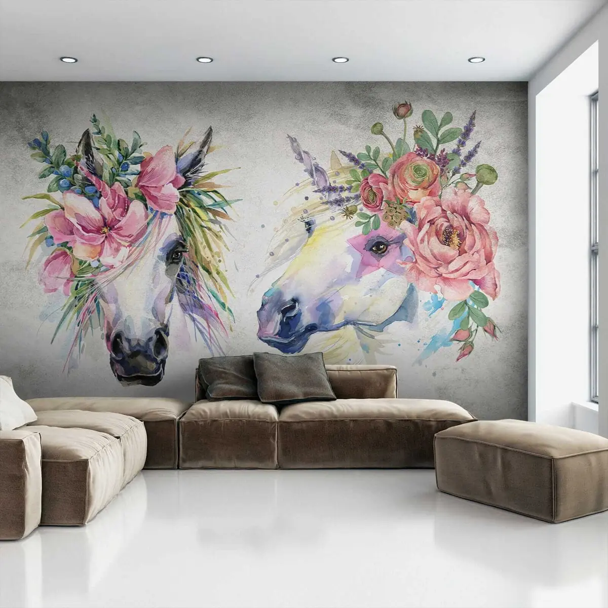 Peintures murales Chevaux avec des fleurs Nr. u14264