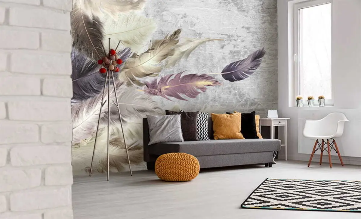 Peintures murales Plumes de couleur sur un mur en béton Nr. u21165