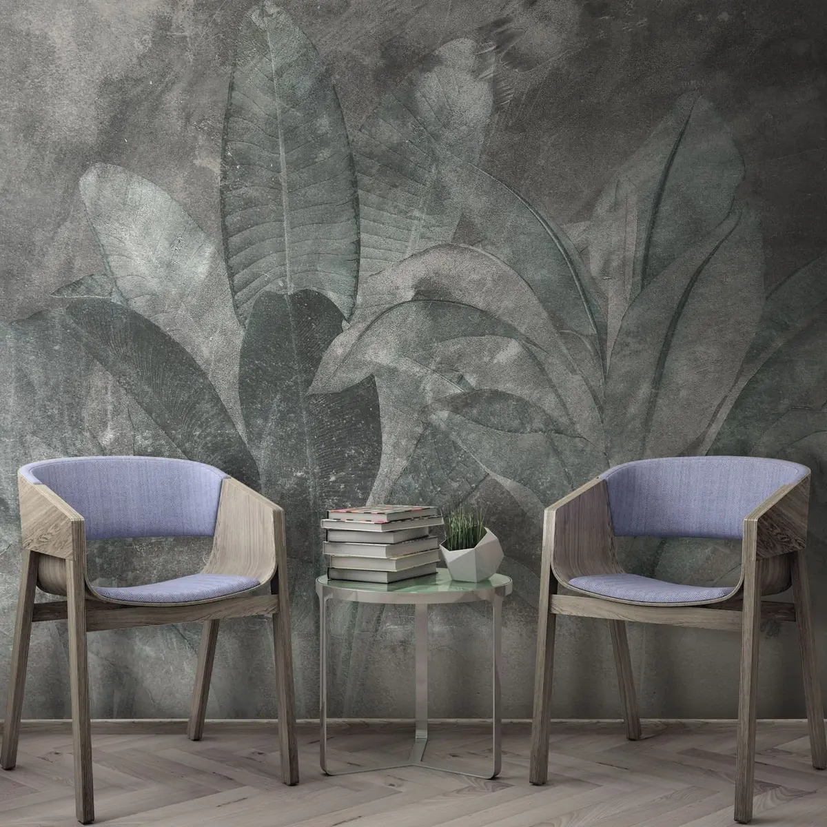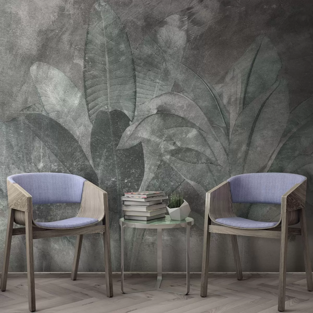 Peintures murales Feuilles de bananier sur un fond de pierre Nr. u73884