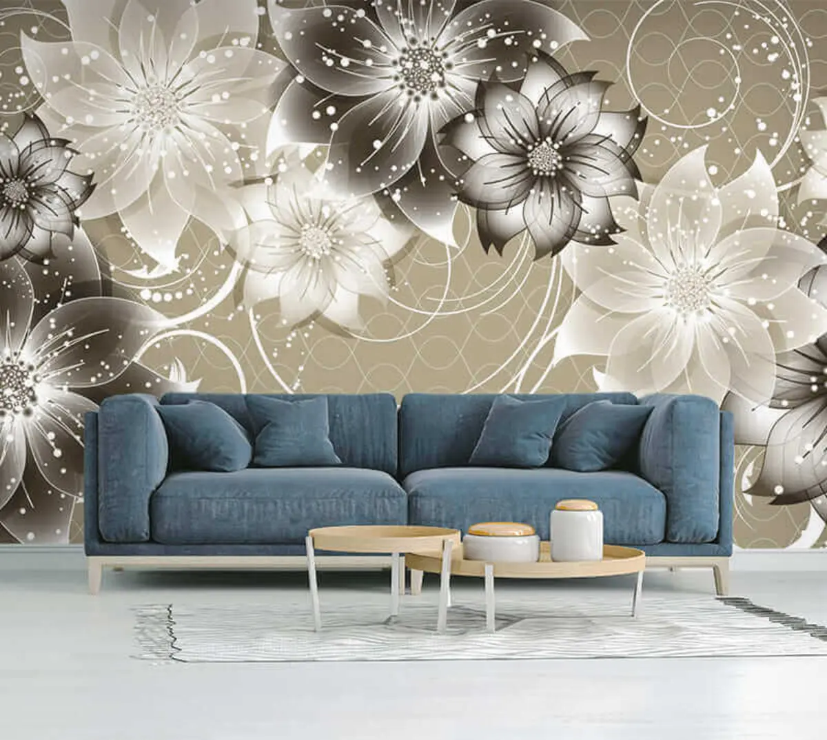 Peintures murales Fleurs blanches sur fond beige Nr. u17606