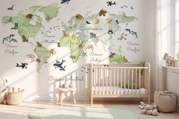 Peintures murales Une carte verte de style aquarelle mettant en scène des animaux. Légendes en espagnol Nr. c00012esv2
