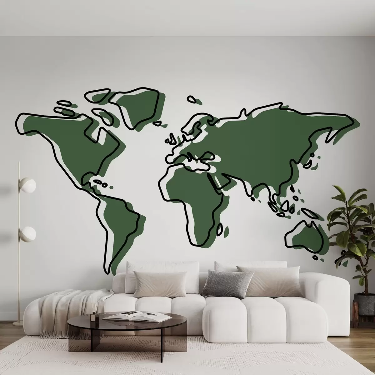 Peintures murales Illustration simplifiée de la carte du monde en vert Nr. u99073v2