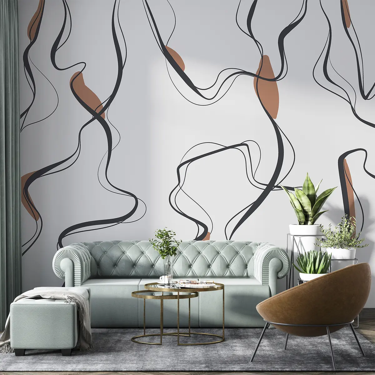 Peintures murales Dessin à l'encre, motif abstrait, lignes géométriques, gris et orange Nr. u99659v3