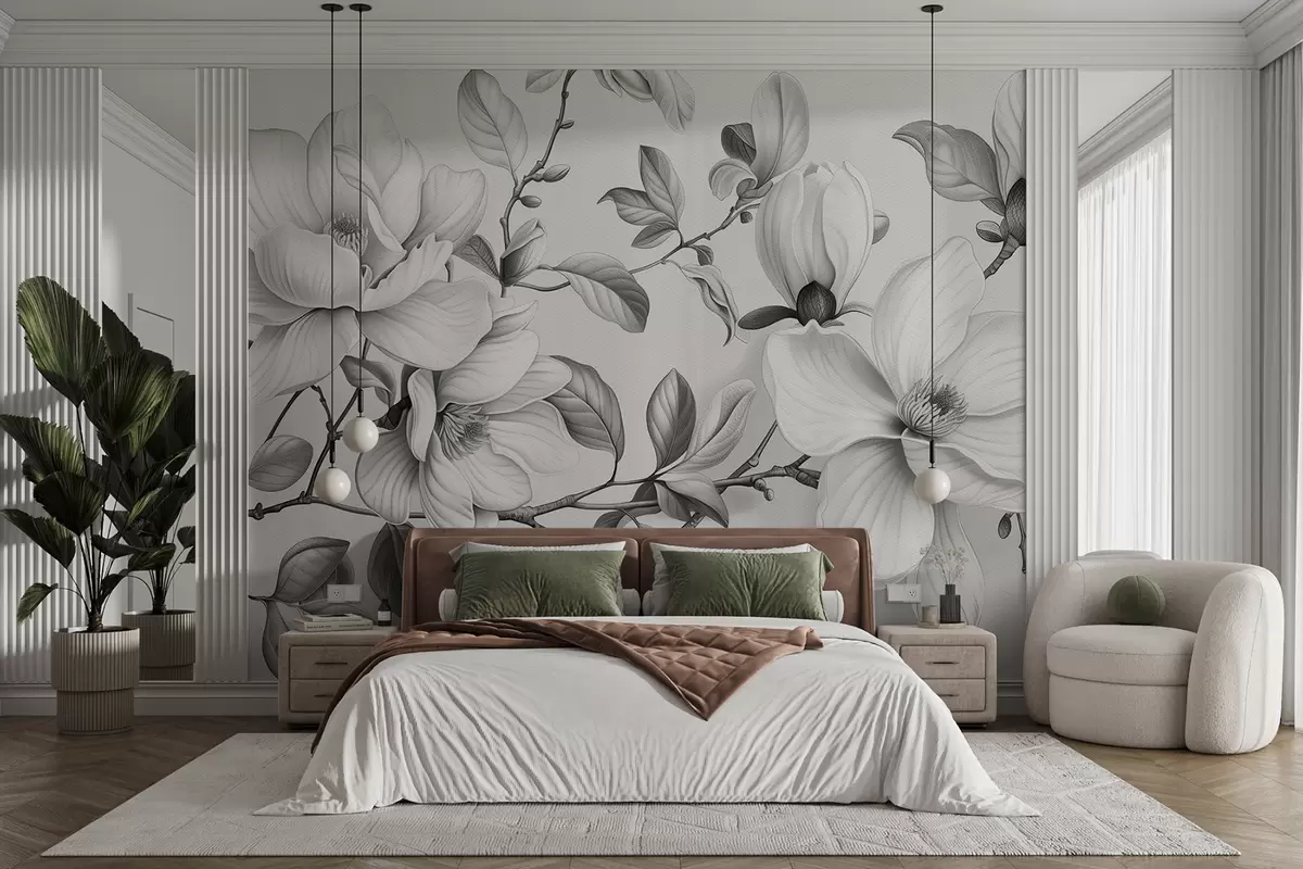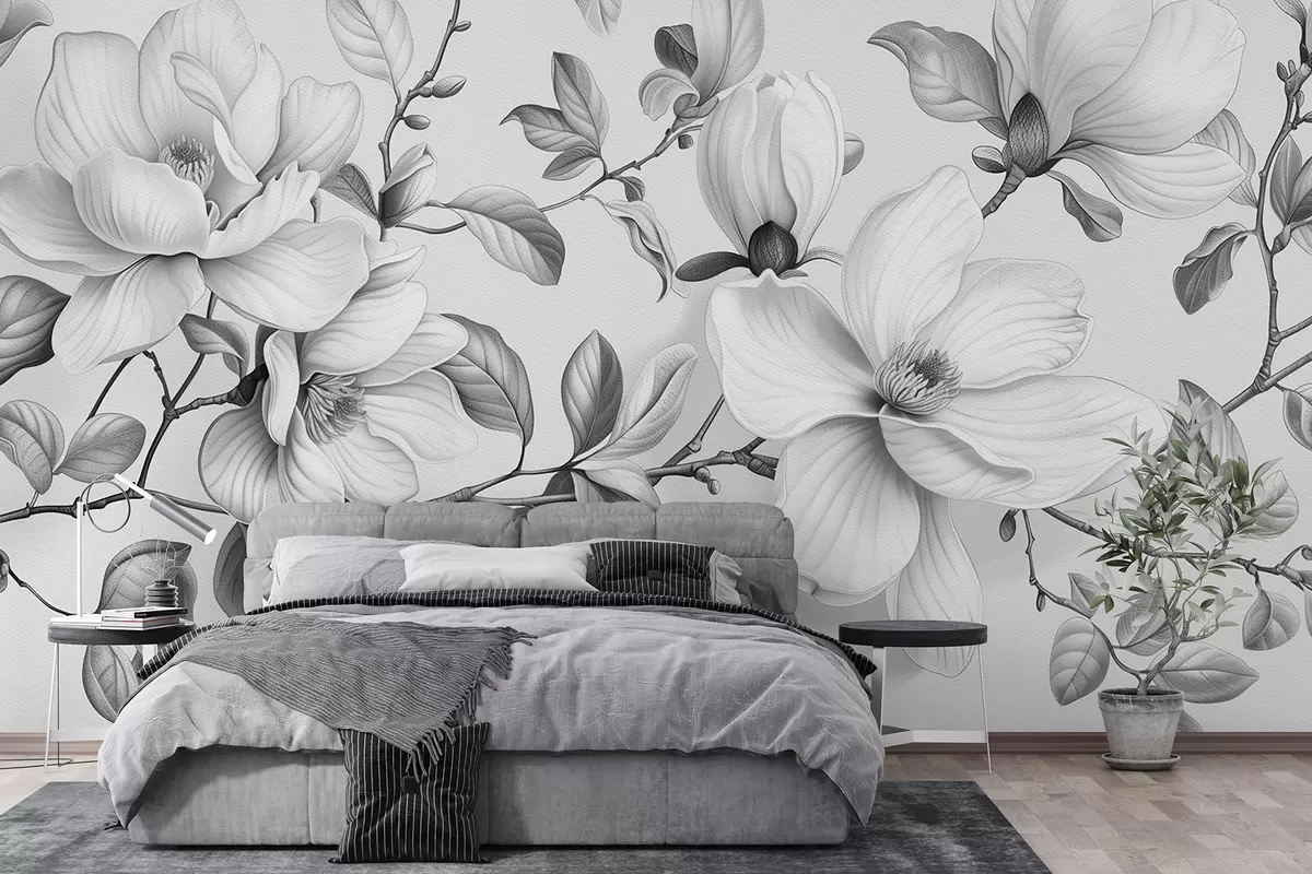 Peintures murales L'élégance du magnolia monochrome Nr. w01429