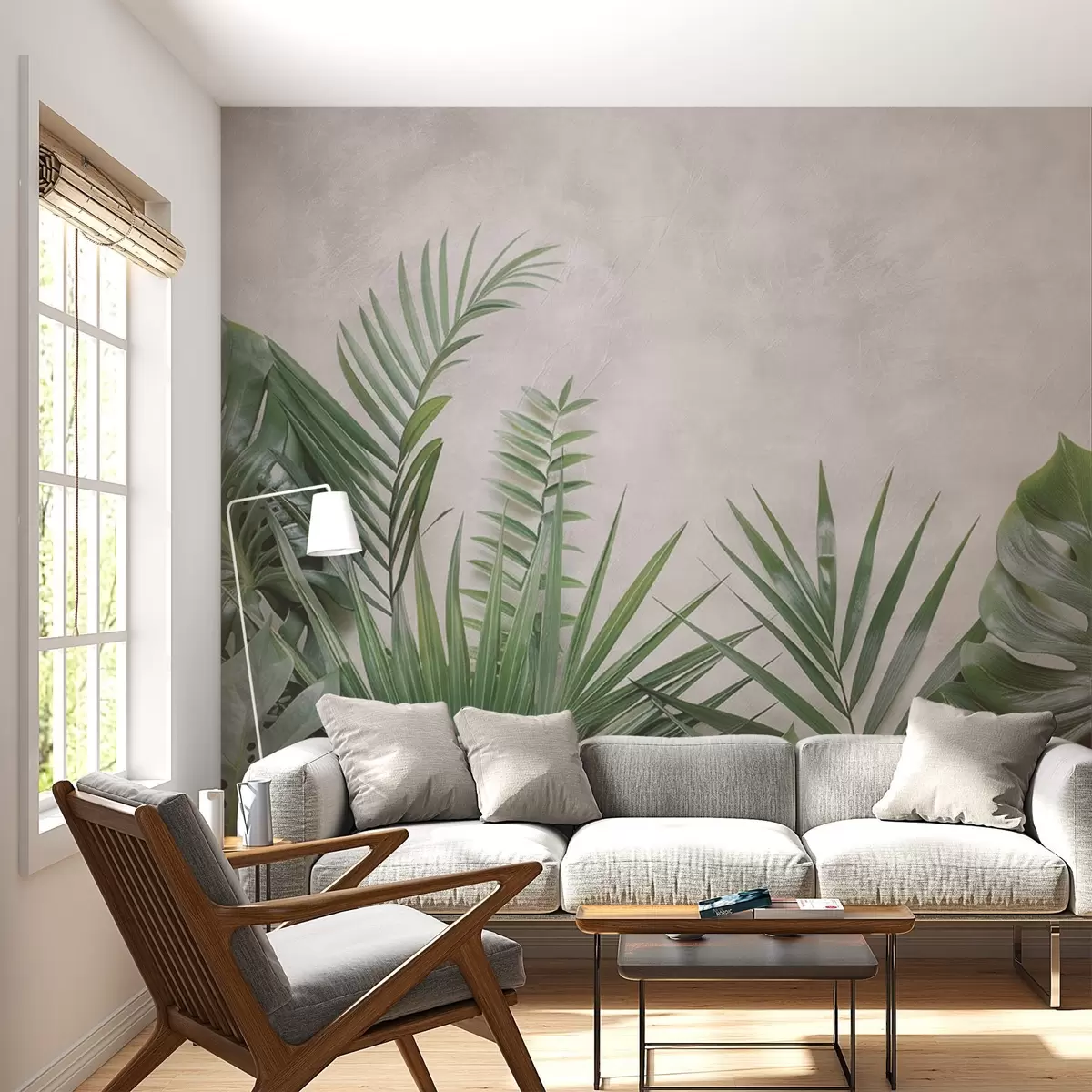 Peintures murales Fourrés tropicaux sur fond de béton clair Nr. w01898