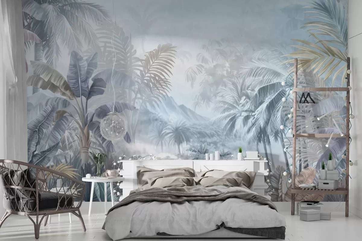 Peintures murales Forêt tropicale dans des tons bleus doux Nr. w01931