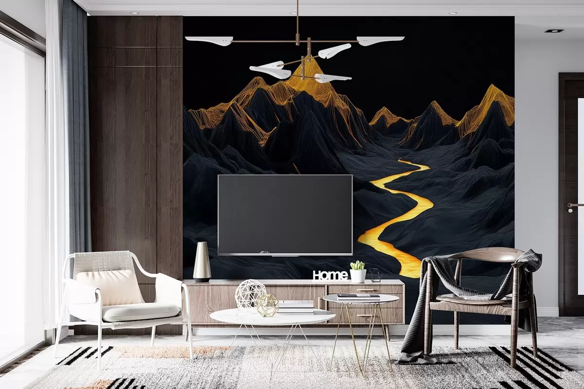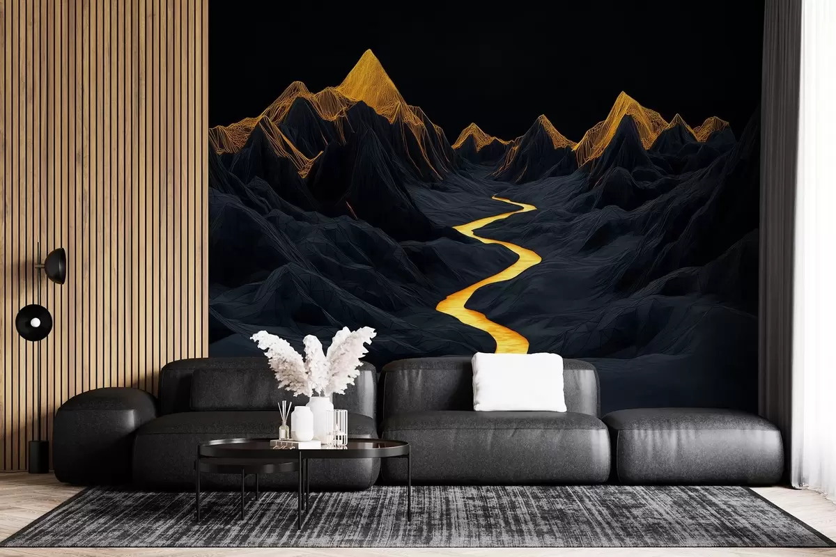 Peintures murales Paysage polygonal noir et rivière entre les montagnes Nr. w02063