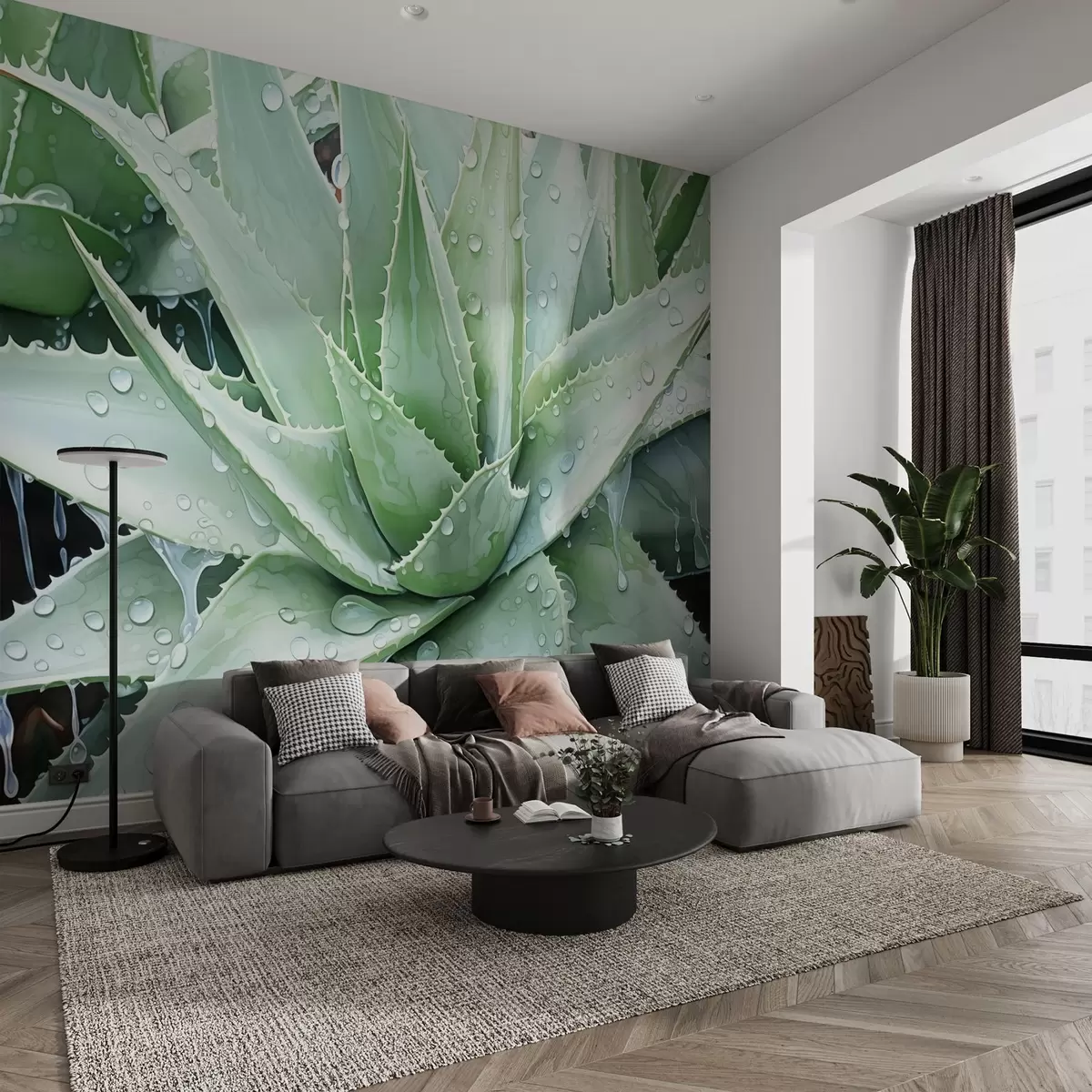 Peintures murales Gouttes de rosée sur aloès imitation aquarelle Nr. w02503