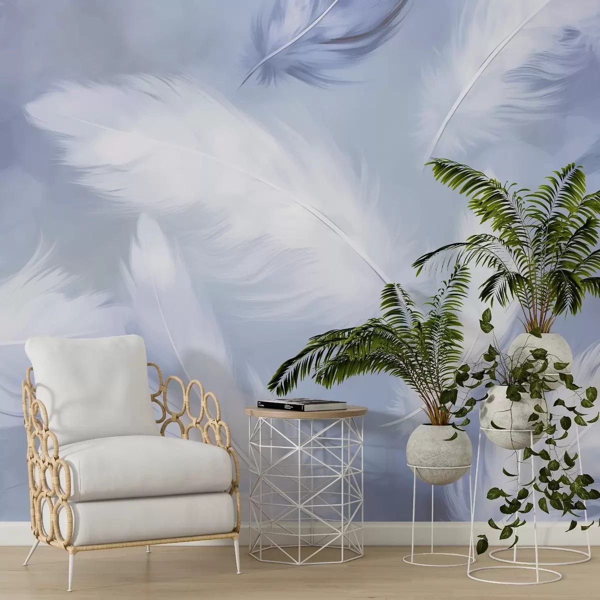 Peintures murales Grandes plumes en bleu Nr. w02601