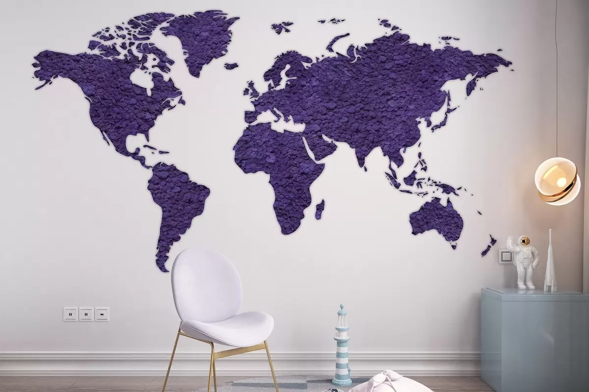 Peintures murales Carte du monde avec mousse, nature, palette de couleurs violettes Nr. w02657v3