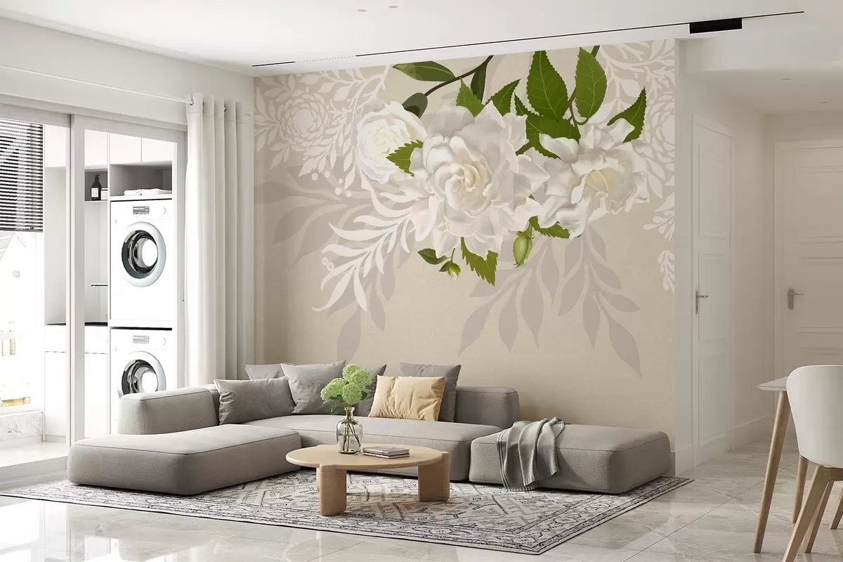 Peintures murales roses blanches sur fond beige Nr. w03453