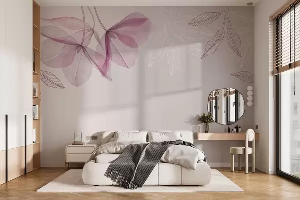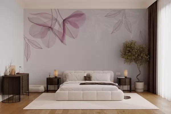 Peintures murales fleurs et feuilles délicates et translucides dans les tons violets Nr. w03616v4
