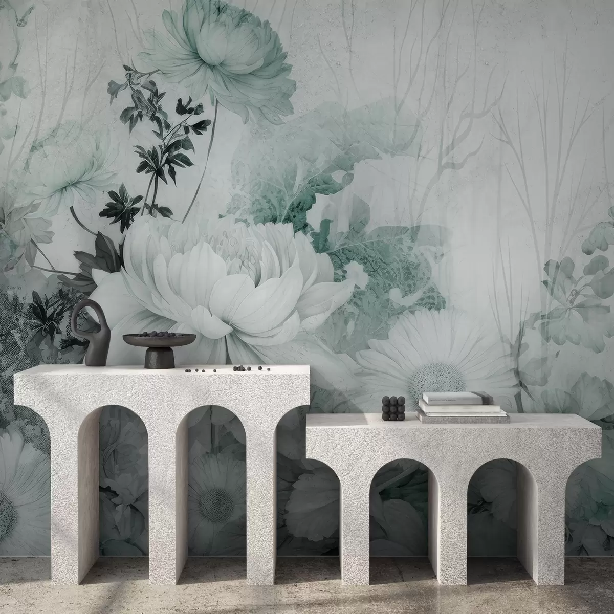 Peintures murales Fleurs vintage sur un vieux mur fissuré Nr. w03654v2
