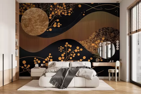 Murale fabuleuse nuit étoilée en style abstrait w03764