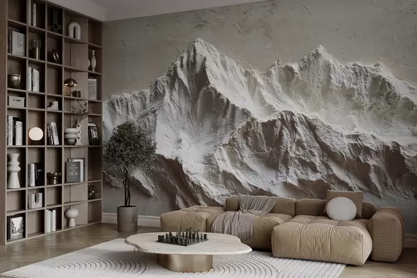 Peintures murales Montagnes gaufrées dans des tons clairs avec texture Nr. w04396