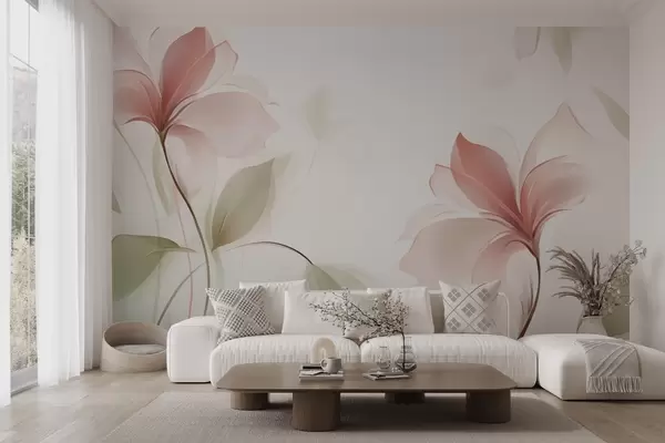 Peintures murales Fleurs transparentes dans des tons délicats de rose et de pastel Nr. w04397v2