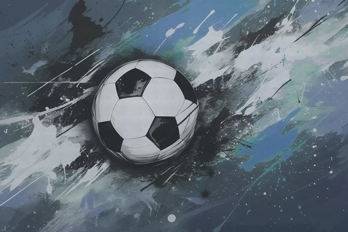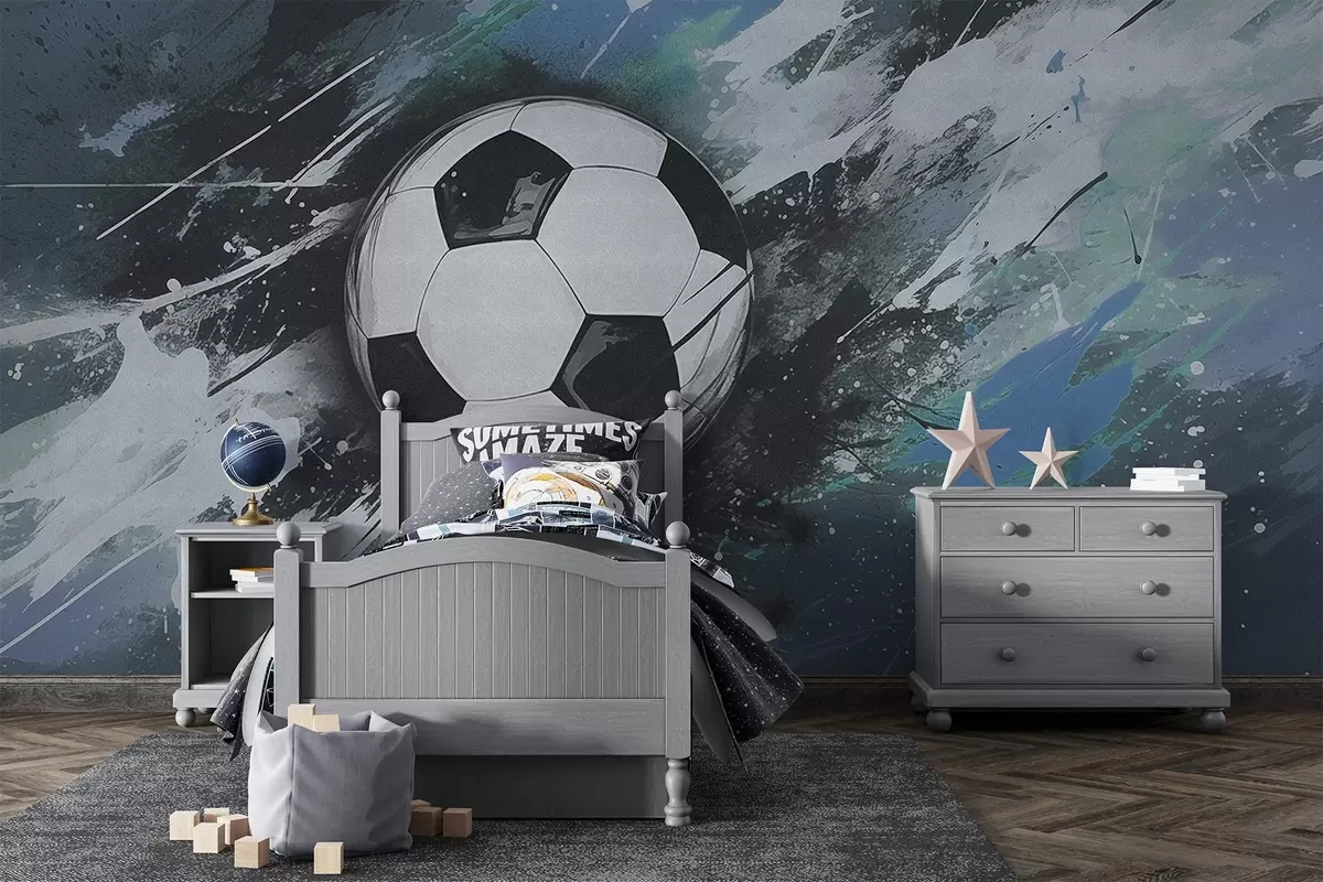Peintures murales Ballon de football avec graffiti flou en arrière-plan Nr. w04467v1