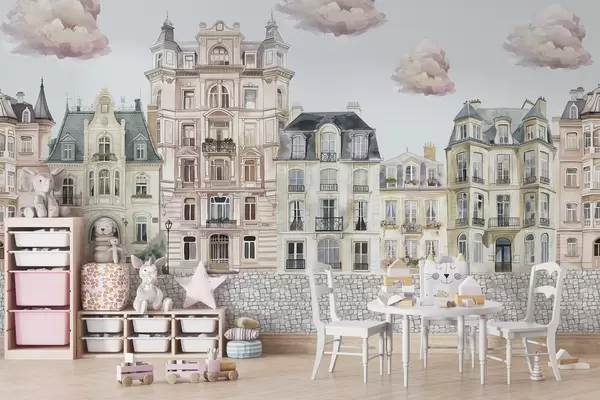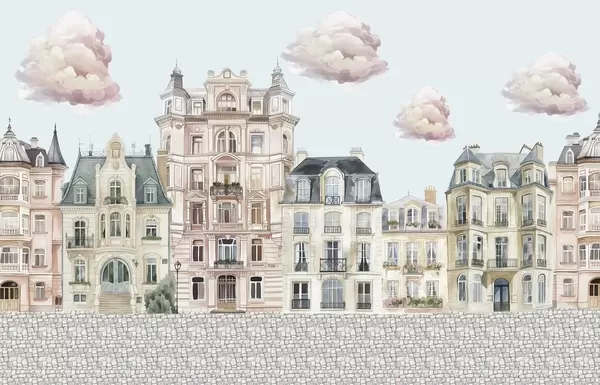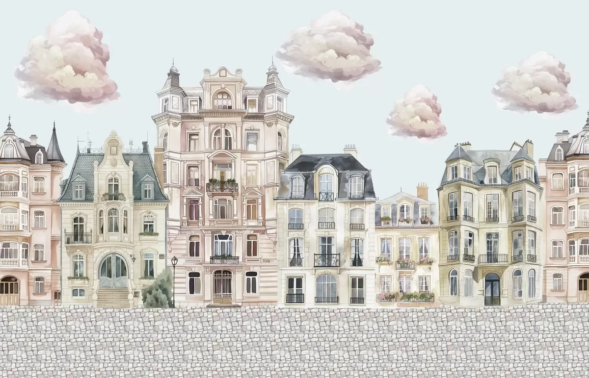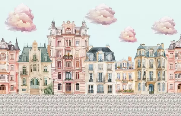 Peintures murales Maisons colorées, nuages Nr. w04474v1