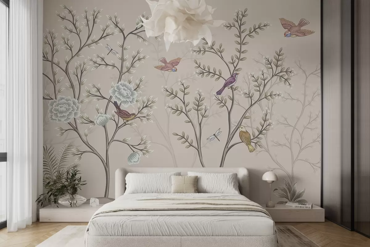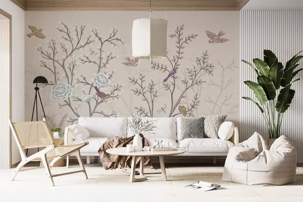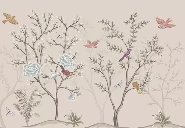 Peintures murales Arbres avec oiseaux et fleurs Nr. w04605