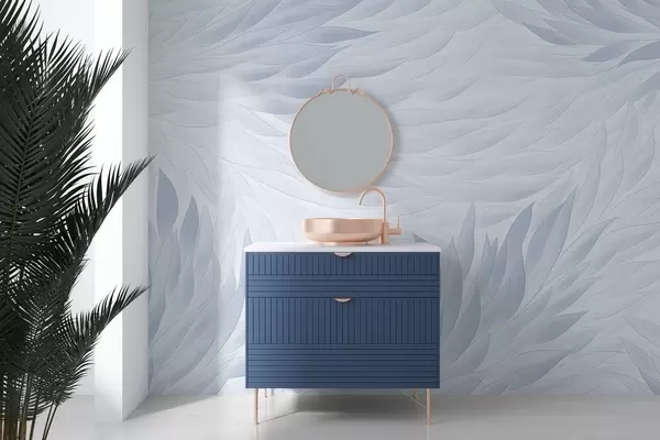 Peintures murales Feuilles ondulées dans des tons bleu clair Nr. w04610v1