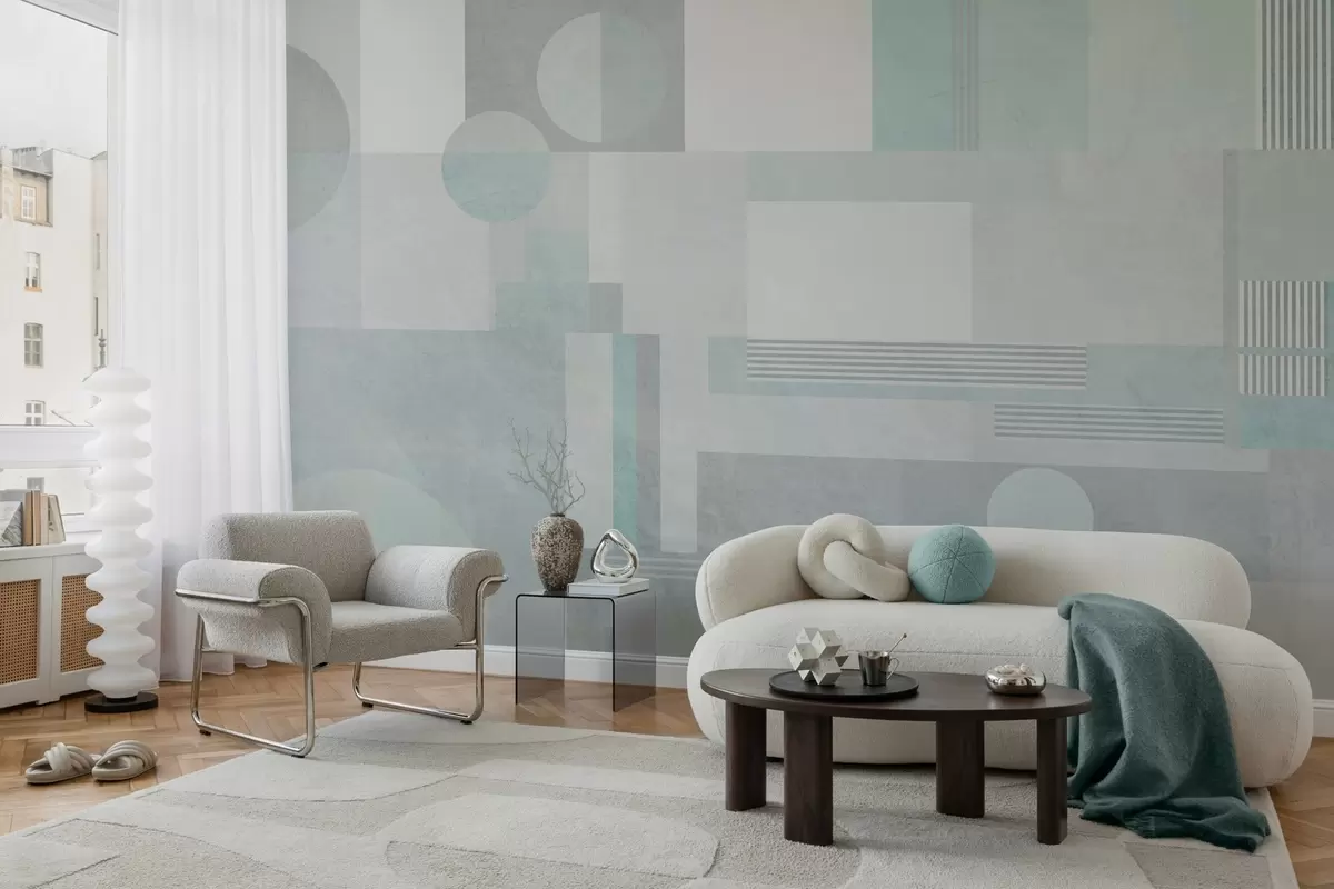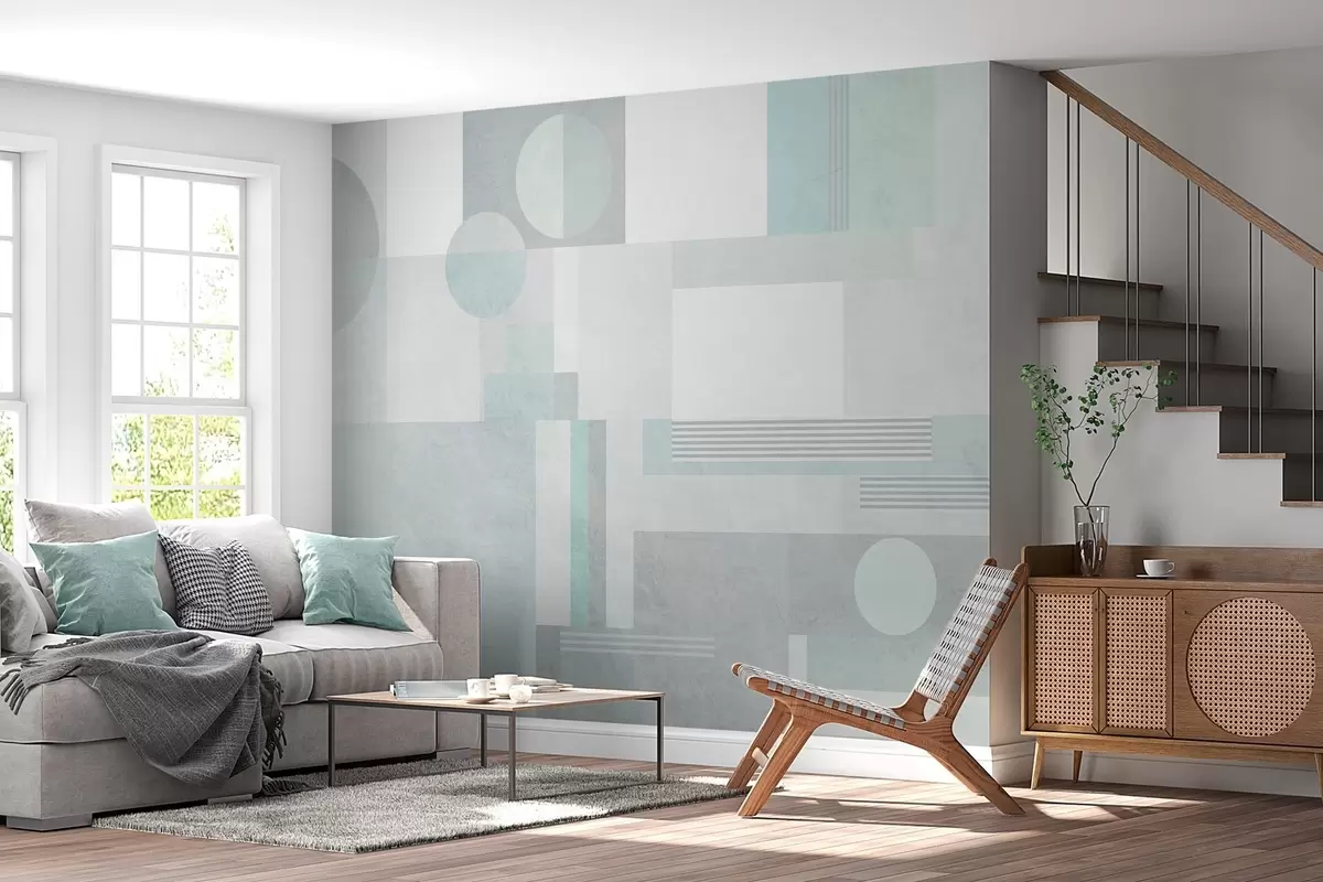 Peintures murales géométrie abstraite dans des tons gris-vert Nr. w04635v3