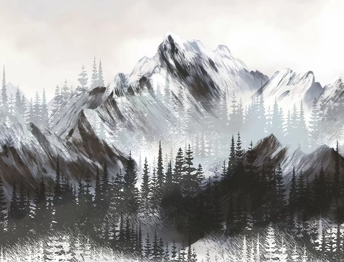 Peintures murales Montagnes et forêt de conifères Nr. w04666v1