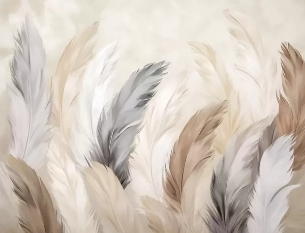 Peintures murales Plumes douces et moelleuses dans une palette neutre et chaleureuse Nr. w04736