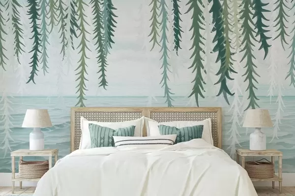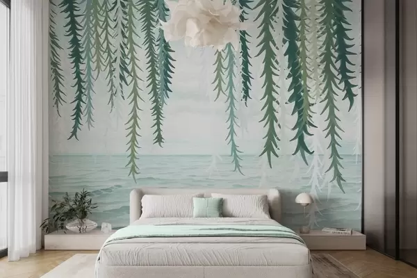 Peintures murales Vignes délicates suspendues au-dessus de l'eau, style aquarelle Nr. w04830