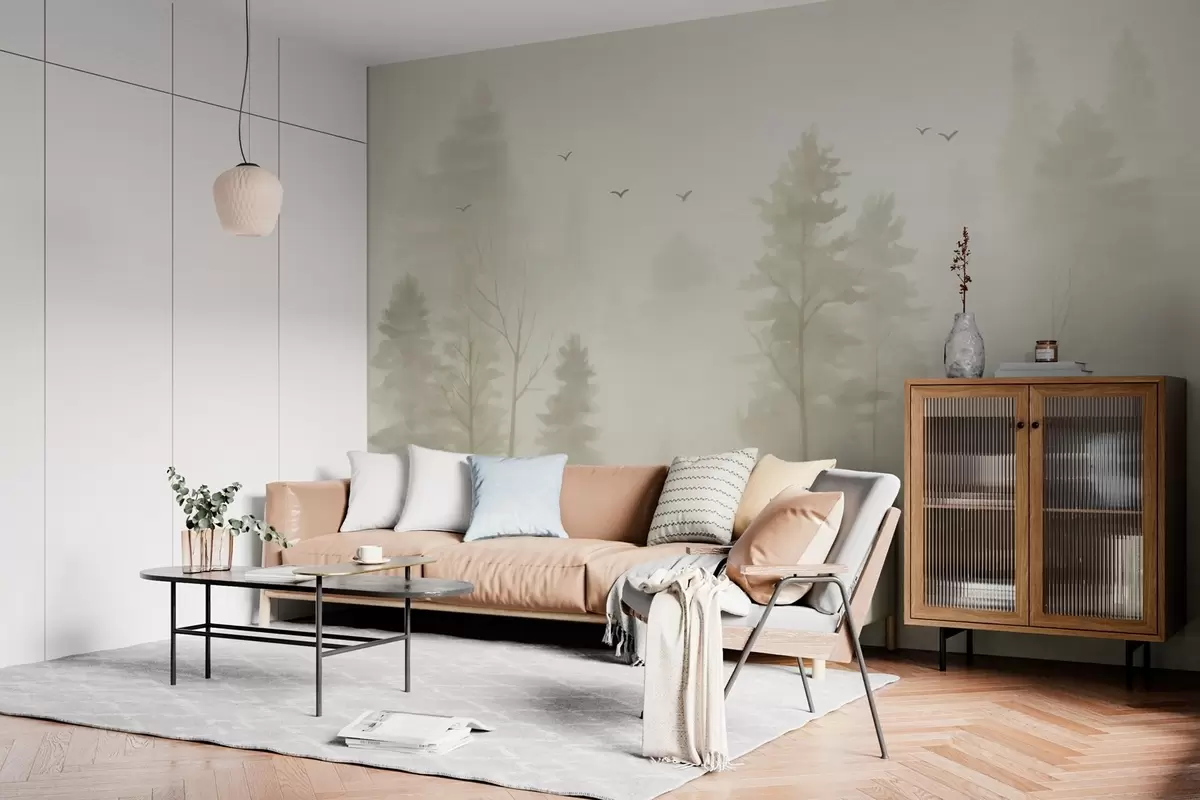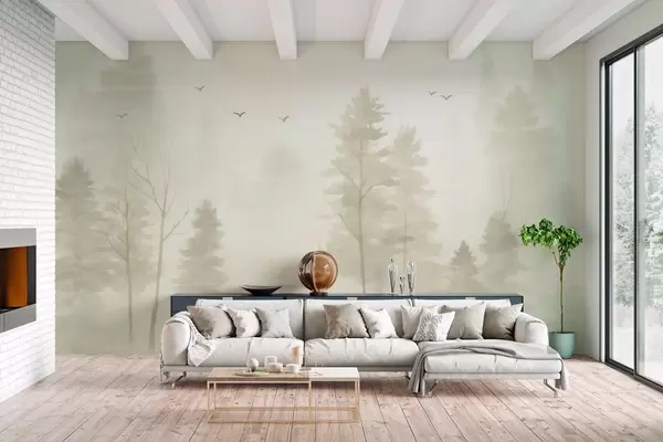 Peintures murales forêt aérienne de style aquarelle dans des tons beiges Nr. w04872