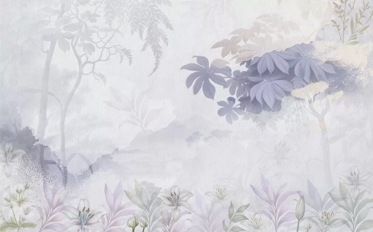 Peintures murales Jardin délicat peint à l'aquarelle à l'aube brumeuse Nr. w04934